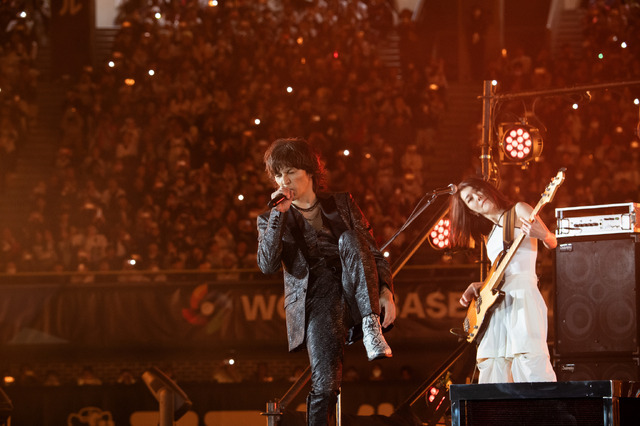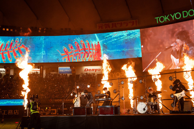 東京ドームで行われた試合前、球場内の照明が落ちると稲葉浩志がステージに登場。パワフルな歌声で「タッチ」を披露すると、大観衆で埋め尽くされた会場全体が大歓声に包まれました。観客が手拍子を送りながらステージを見守る姿も見られ、会場全体が大会の熱狂を共有する特別な瞬間となりました。