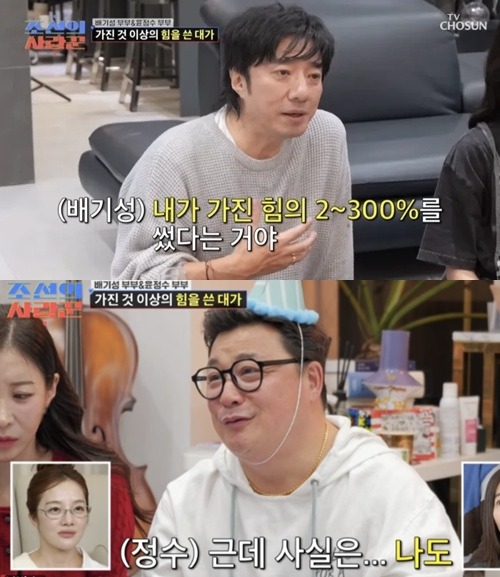 ユン・ジョンスの妻ウォン・ジンソが「1日に何回もしていた」と冗談交じりに暴露すると、ペ・ギソンは「子どもを作ろうとして、父親が先に死にそうだ」と苦労を吐露し、場を笑いに包んだ。