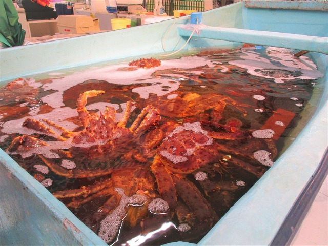 さらに、会場には全長約3mの舟形水槽も設置され、海明け毛蟹が泳ぐ様子を見ることができる。好みの蟹を選び、その場でボイルしてイートインスペースで味わえる。