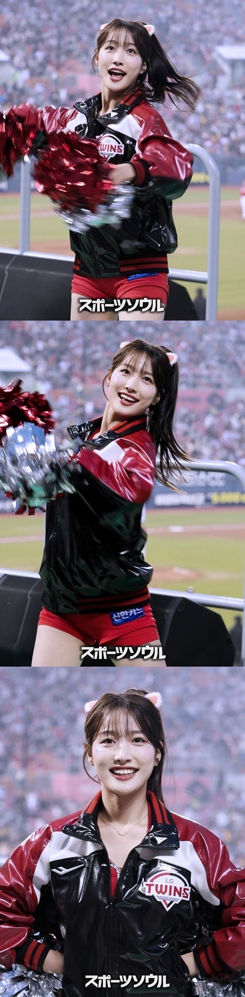 グラウンドの熱気に負けない彼女の情熱的なパフォーマンスは、チームの勝利を願うLGファンのボルテージを最高潮に引き上げた。新人らしからぬ堂々とした姿に、今後の活躍を期待する声が相次いでいる。