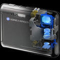コニカミノルタは15日、厚さ19.5mmの薄型コンパクトボディに手ブレ補正機構を内蔵する800万画素デジタルカメラ「ディマージュ X1」を発表した。8月下旬発売で、実売予想価格は5万円前後。