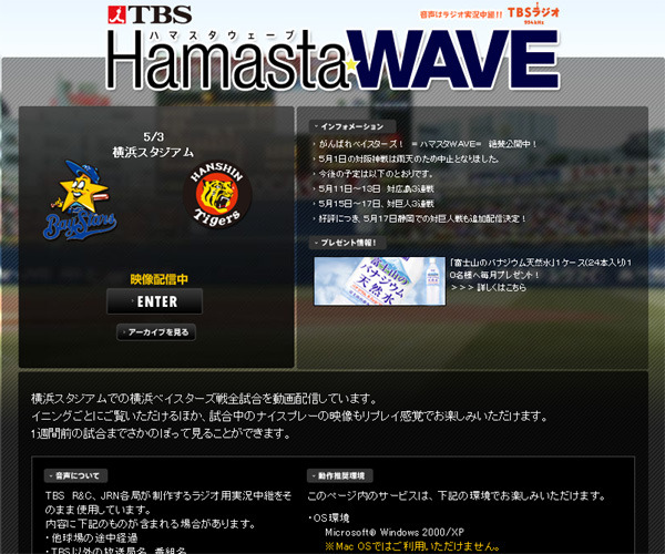 TBSが運営しているプロ野球のベイスターズ戦・動画配信サイト「ハマスタWAVE」がリニューアルした。