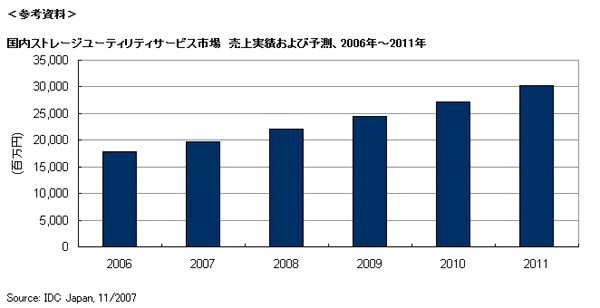 IDC Japanは19日、国内ストレージユーティリティサービス市場の2006年の売上実績と、2011年までの予測を発表した。