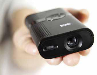 - 胸ポケに入れて持ち運び手軽に投影、バッテリ内蔵の小型・軽量LEDプロジェクタ