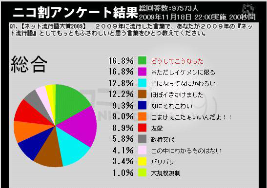 ニコニコ動画で、ニコ割アンケートを利用した「ネット流行語大賞2009&ケータイ流行語大賞2009 ニコ動調査」を実施。金賞には「※ただしイケメンに限る」が輝いた。