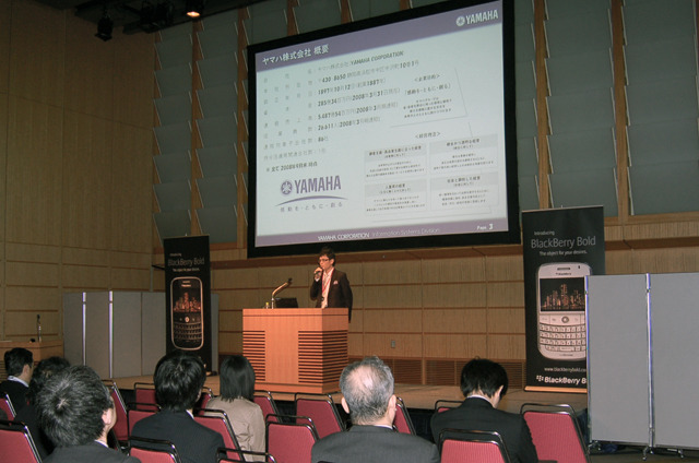 東京国際フォーラムで26日、27日の2日間にわたって開催された「BlackBerry Day 2009」で27日、ヤマハがBlackBerryの導入事例とワークスタイルを紹介するブレイクアウトセッション「私的BlackBerry導入記」を開催した。