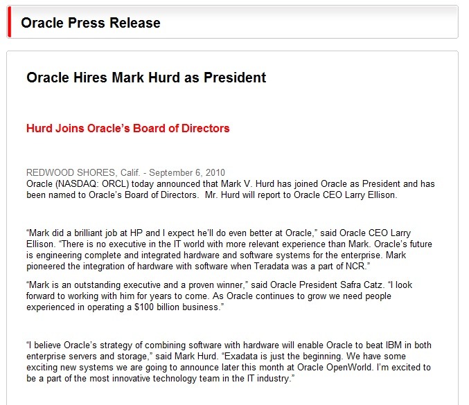 米オラクル、米HPの元CEOマーク・ハード氏を社長に! 2枚目の写真・画像