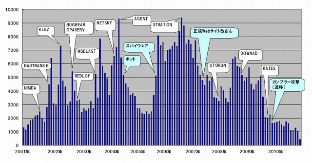 トレンドマイクロは21日、「2010年度のインターネット脅威レポート(日本国内)」を公表した。有名企業のWebサイトの改ざん被害が多発し、「いつも見ているサイトで感染が現実化した年」と、同レポートでは位置付けている。
