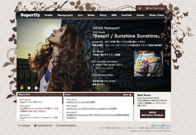 Superflyが東北地方太平洋沖地震の被災者たちに向けたメッセージソングをオフィシャルホームページ上で公開している。