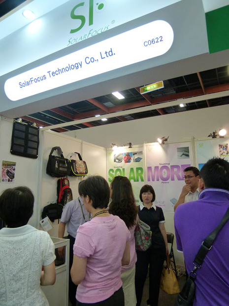 周辺機器メーカーが集まる世貿中心会場で、小規模ながら大盛況のブースがあった。取り扱っている製品は、軽量の太陽光発電セットがeBook専用カバーやアウトドア用品化したものだ。