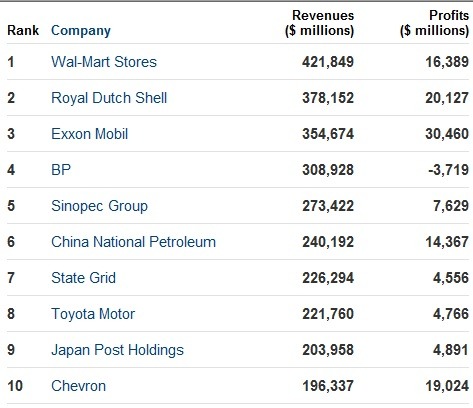 米経済誌フォーチュン(Fortune)は7日(現地時間)、前年の売上高をもとにした世界企業500社番付を発表した。
