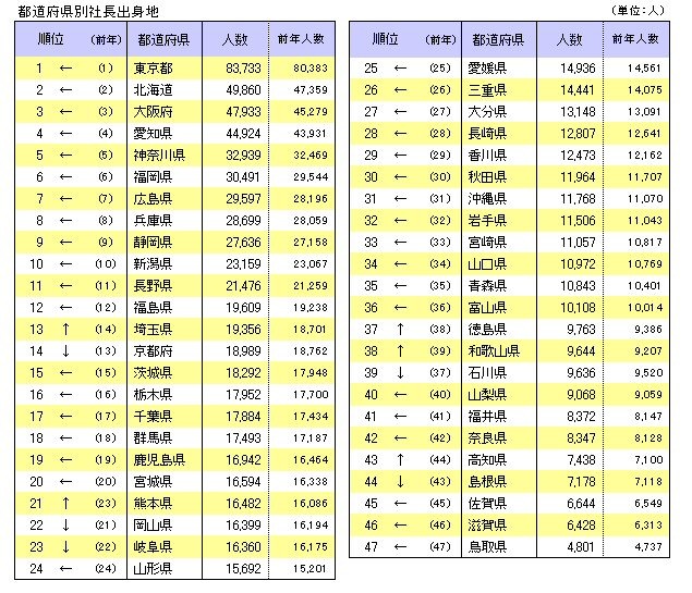 都道府県別社長出身地