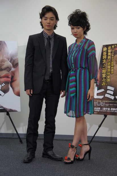 11日、第68回べネチア国際映画祭で最優秀新人俳優賞を受賞した、映画『ヒミズ』の主演、染谷将太さんと二階堂ふみさんが、都内で記者会見した。