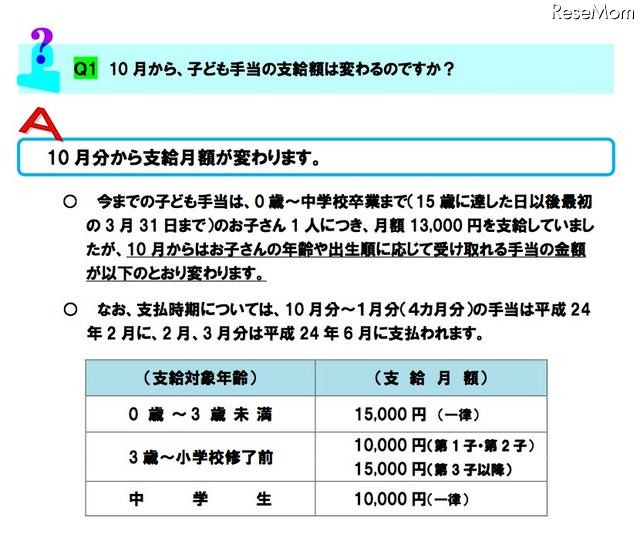 10月からの子ども手当Q&A