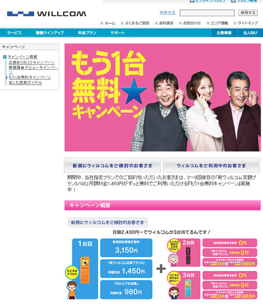 ウィルコム、「もう一台無料キャンペーン」の適用対象を拡大 2枚目の写真・画像