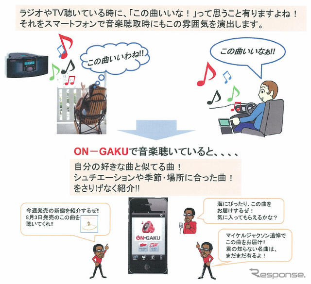 “音楽シーン”がスマートフォンにも広がる中で、新たな音楽サービスが始まった。メディアクリックがAppleのiOS向けに提供する「ON-GAKU」である。スマートフォンとクルマが急速に接近する中で、どのような狙いを持っているのか。