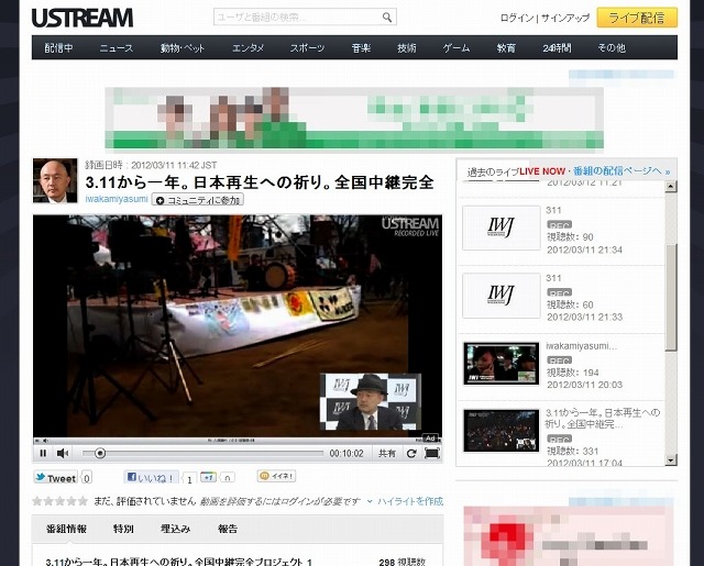 Ustream Asiaは12日、東日本大震災1年に関連する番組の延べ視聴者数が、合計で約37万人を記録したことを発表した。