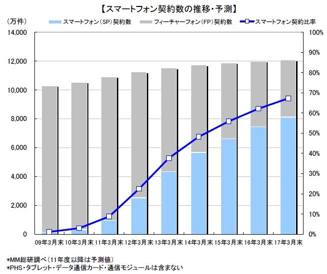 スマートフォン出荷台数、2011年度は前年比2.7倍の「2,340万台」……MM総研調べ 2枚目の写真・画像