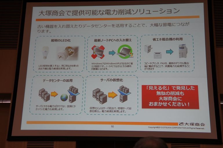大塚商会は19日、中小企業の節電対策に向けた商品として『電力の見える化スターターパック』を発売した。同商品は、無線機能を備えたスマートコンセントとUSB型のコントローラーがパックとなったもので、価格は12万円。