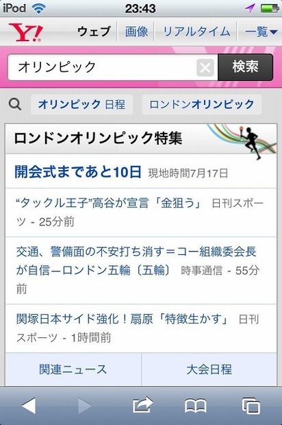 ヤフーは25日、「Yahoo!検索」の各検索サービスにおいて、ロンドンオリンピックを便利に楽しむため、4つの新機能を公開した。いずれも期間限定での公開となる。