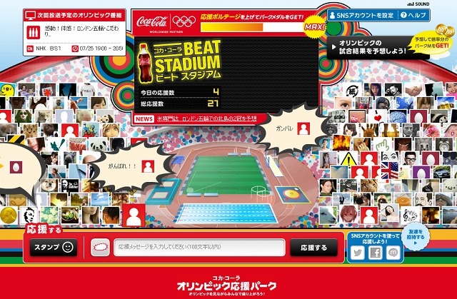 日本コカ・コーラが運営する、ロンドンオリンピック情報を集めたポータルサイト「オリンピック応援パーク」が、ロンドンオリンピックの開幕に合わせ、7月26日にリニューアルオープンした。