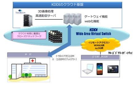 KDDI株式会社と米テラリコンは2日、医療機関向けでの協業を発表した。3日より、医療業界で国内初となるクラウド型「リアルタイム3D医用画像ソリューション」の提供を開始する。