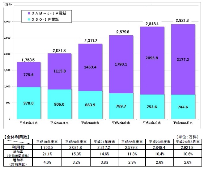 総務省は29日、2012年6月末時点での電気通信サービスの加入契約数等について取りまとめた結果を公表した。電気通信事業者からの報告をもとに算出したものとなっている。