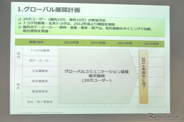 トヨタ自動車は10月2日、本社および国内外にある子会社で使用するグローバルコミュニケーション基盤としてマイクロソフトプラットフォームを全面的に採用することを明らかにした。2014年度中に国内外の従業員および経営陣の約20万人が利用することになるという。