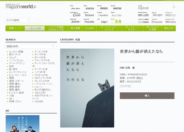 NHN Japanは3日、同社が運営する無料通話・無料メールスマートフォンアプリ「LINE(ライン)」において、小説「世界から猫が消えたなら」(川村元気著)の連載を、公式アカウントで10月8日より先行無料配信することを発表した。