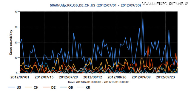 2012年7~9月の5060/UDP宛のパケット観測数
