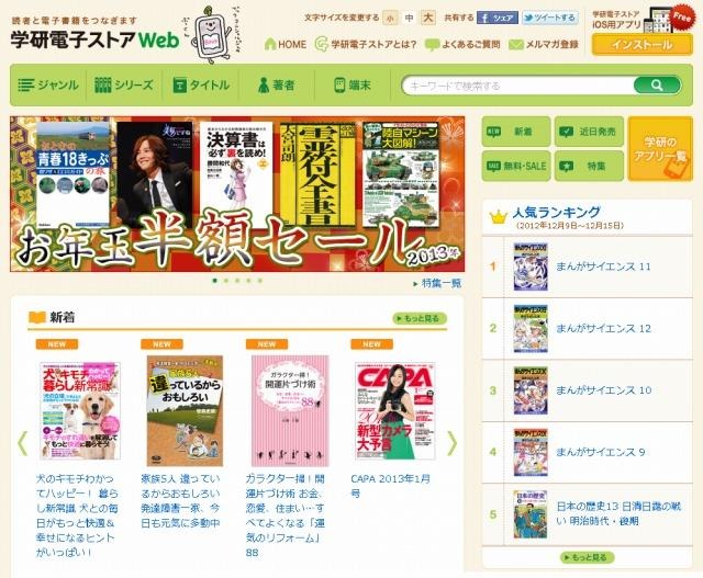 学研ホールディングスは、iPad/iPhone対応アプリ「学研電子ストア」にて、「年末年始 受験勉強応援セール」および「2013年 お年玉半額セール」を配信開始した。