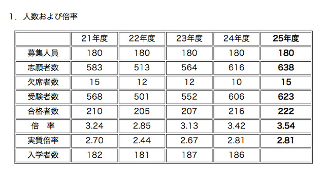 灘中学校は1月21日、平成25年度の入学試験における合格者数、倍率、教科別平均点などを公開。623名の受験のうち222名が合格、実質倍率は2.81となった。また、四谷大塚は、入試2日目の国語の問題および解答を公開している。
