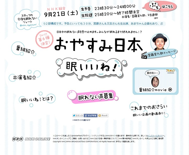 21日の深夜1時20分から放送されるNHK総合『おやすみ日本 眠いいね!』で、NHK連続テレビ小説『あまちゃん』の脚本を務める宮藤官九郎がドラマへの質問等に生放送で答える。