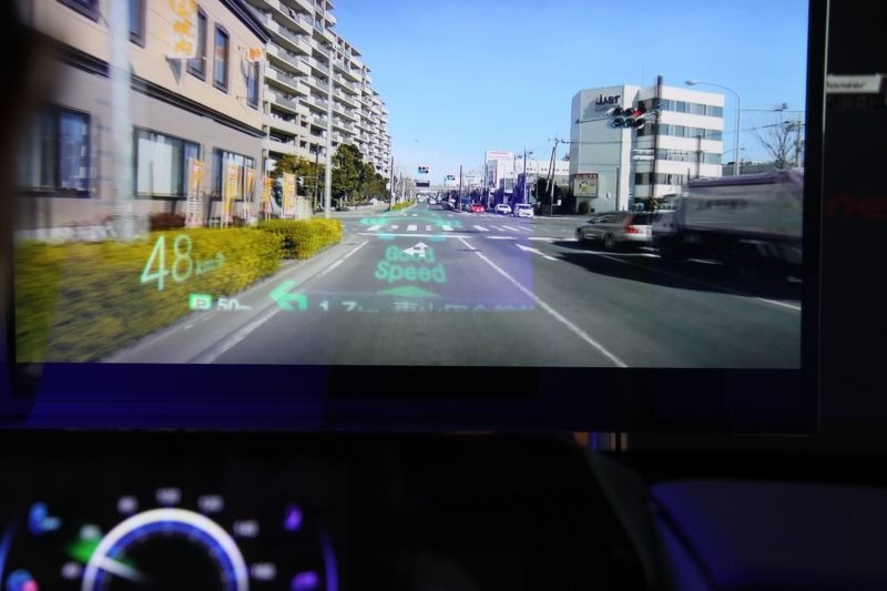 パイオニアは、次世代IVI(In-Vehicle Infotainment)のコンセプトモデルを展示している。最大の特徴は、フロントウィンド全体を使ったヘッドアップディスプレイ(HUD)による多彩な機能表示だ。