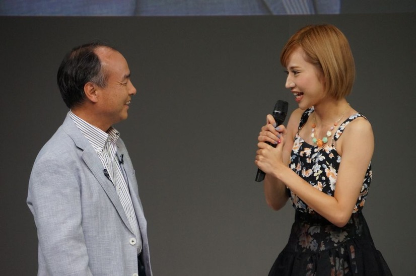 タレントのスギちゃんと水沢アリーが30日、ソフトバンクモバイルの新商品発表会に登場。孫社長との初対面に水沢は、「孫くん、すごーいオーラ」といきなりタメ口を発した。