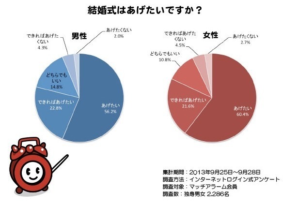 マッチアラームは、独身男女2,286名を対象に、恋活・婚活に関する調査を実施し、その結果を発表した。