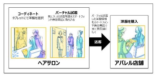 東芝、東芝ソリューション、柿本榮三美容室(kakimoto arms)は22日、ヘアスタイルやパーソナルカラーに合わせた服をバーチャル試着することによる実店舗への送客効果に関する実証実験を開始した。
