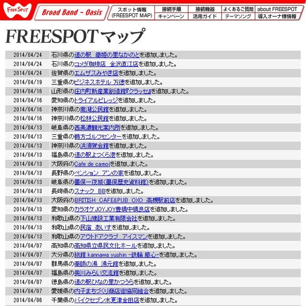 フリースポット協議会は、石川県の道の駅 織姫の里なかのとなど3か所に設置されたアクセスポイントを新たに追加した。