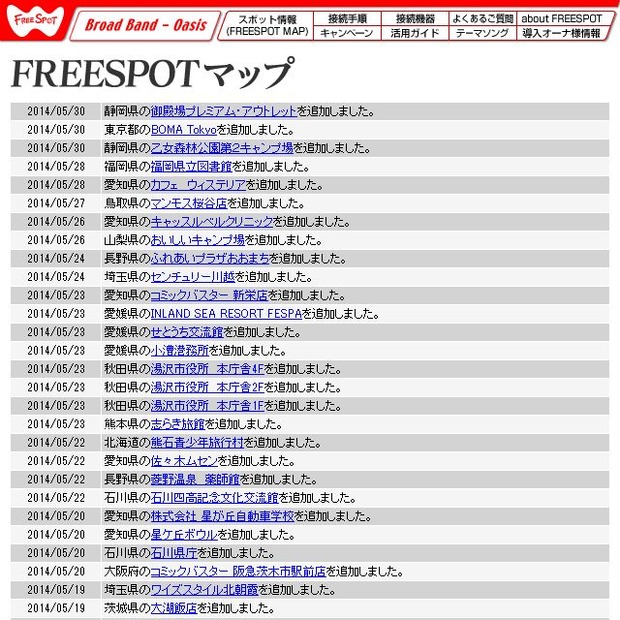 フリースポット協議会は、静岡県の御殿場プレミアム・アウトレットなど3か所に設置されたアクセスポイントを新たに追加した。