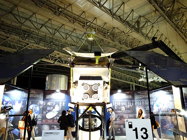 「SPACE EXPO 宇宙博 2014 NASA・JAXAの挑戦」(千葉・幕張メッセ、7月19日~9月23日)では、太陽電池パドルを左右に備えた大小2種類のモデルが展示されている。国際宇宙ステーション(ISS)と小惑星探査機「はやぶさ」だ。