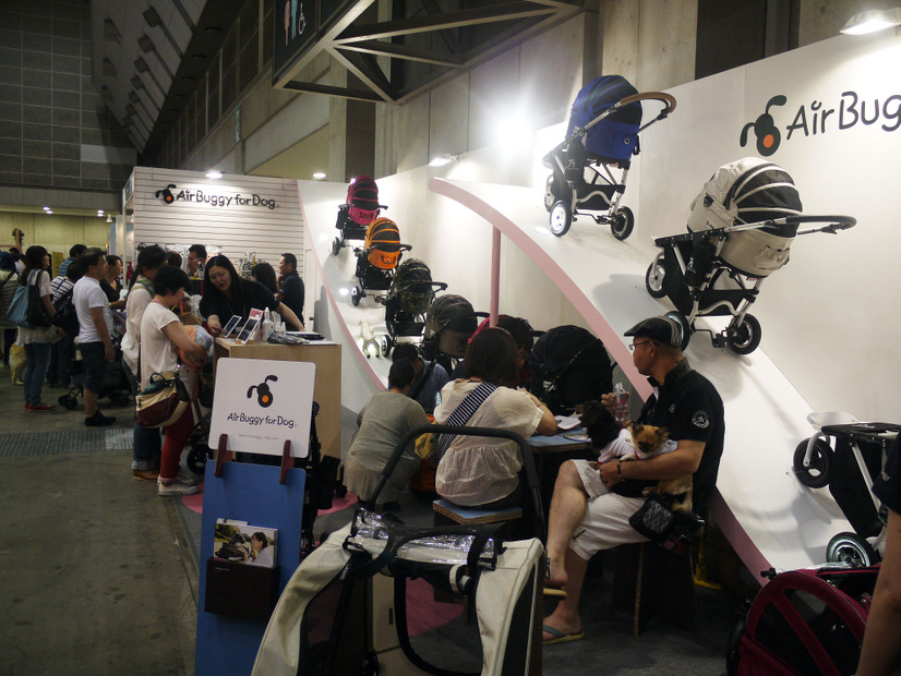 Interpetsの会場を歩いていると愛犬をカートに乗せている飼い主が多いことに気付く。GMPインターナショナルのブースも来場者の関心を集めていた。