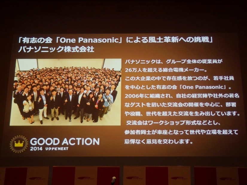 リクルートキャリアは4日、同社が運営する転職情報サイト「リクナビNEXT」主催の「グッド・アクション2014 ~職場を盛り上げるための取り組み~」の部門賞を発表・表彰する表彰式を都内で開催した。各社の従来の枠にとらわれない取り組みが紹介された。