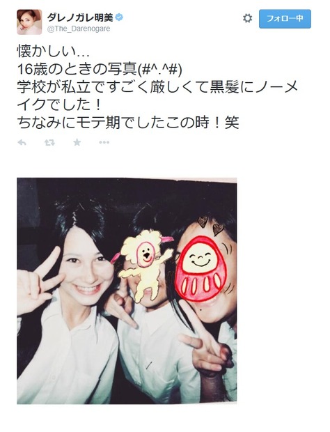 モデルでタレントのダレノガレ明美が11日、モテ期が訪れていたという16歳のときの自身の写真をTwitterで披露した。