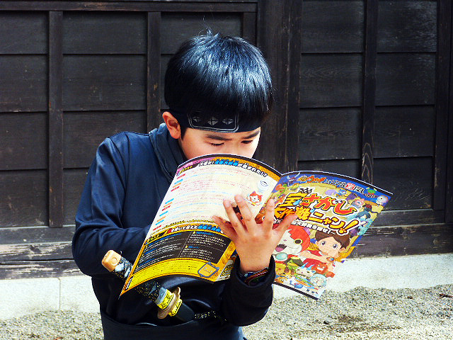 桜が満開の江戸ワンダーランド日光江戸村(栃木県日光市)のなかを、鈴木福くんが駆け回った。5月24日まで開催されている「妖怪ウォッチ×リアル宝探し『宝さがし大作戦ニャン!』」に挑戦したのだ。