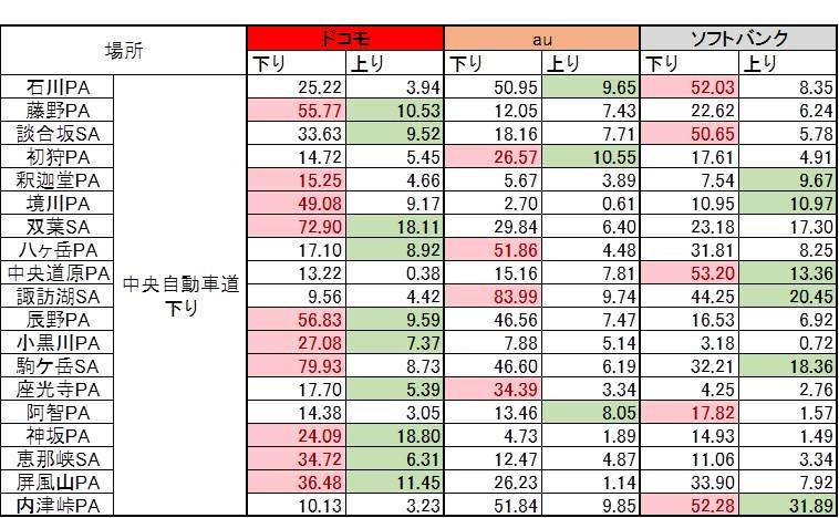 今回RBB TODAYでは、中央自動車道の下り線、そして東名高速道路の上り線にあるパーキングエリア(PA)およびサービスエリア(SA)において主要3キャリアの通信速度調査を実施した。