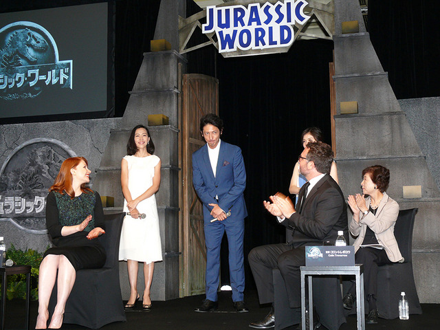 世界中で恐竜サイズのメガヒットを記録している『ジュラシック・ワールド』の来日記者会見が7月13日(月)、都内で行われ、コリン・トレボロウ監督、出演するブライス・ダラス・ハワード、ニック・ロビンソン、タイ・シンプキンスが出席。本作を熱烈PRした。