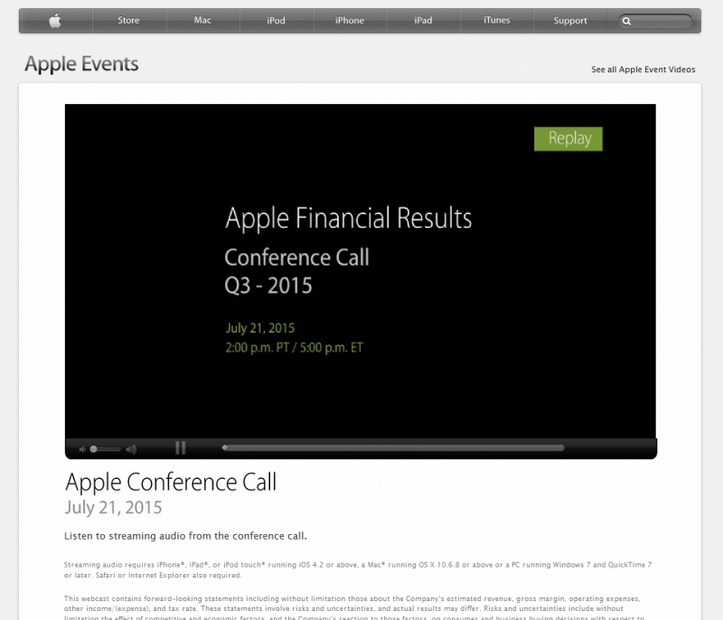 米アップルは現地時間21日、2015年度第3四半期の業績を発表した。当四半期の売上高は496億ドル、純利益は107億ドルで、過去最高の第3四半期業績となった。前年同期は、売上高が374億ドル、純利益が77億ドルだった。
