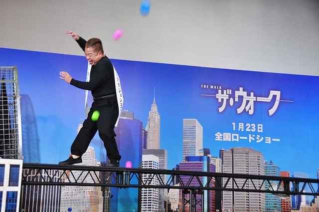 出川哲朗が1月20日(水)、映画『ザ・ウォーク』の公開記念イベントで映画になぞらえて、空中散歩による映画宣伝を行ったが、平均台の幅が「広すぎる!」と簡単すぎることに抗議し…