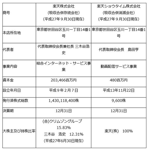 楽天は23日、動画配信サービス事業を展開する子会社「楽天ショウタイム」について、吸収合併することを決定した。4月1日付で合併の予定。