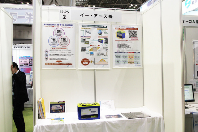 省エネ対策事業や蓄電池事業を手掛けるイー・アースは27日、東京ビッグサイトで開催中の「新電力EXPO2016」で、米Firefly社のカーボンフォーム蓄電池に関する展示を行った。